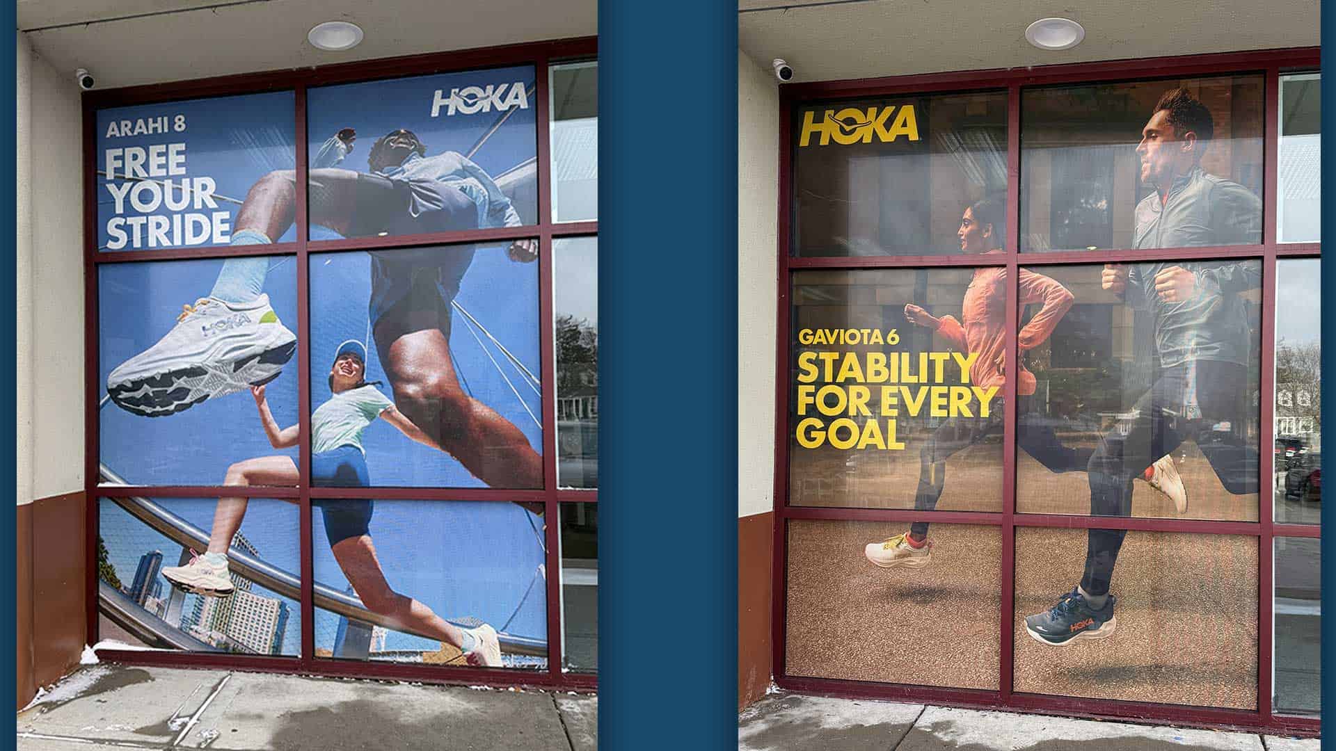 Timing is everything for retail. During the holiday shopping season, a shoe retailer in Niles, Illinois needed new perforated window graphics installed to promote a new workout shoe. The deadline couldn’t move so installing the graphics in December was a must.